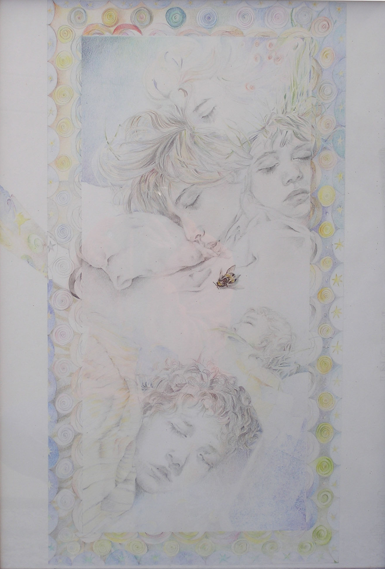 Grafito y lápices de colores sobre papel.