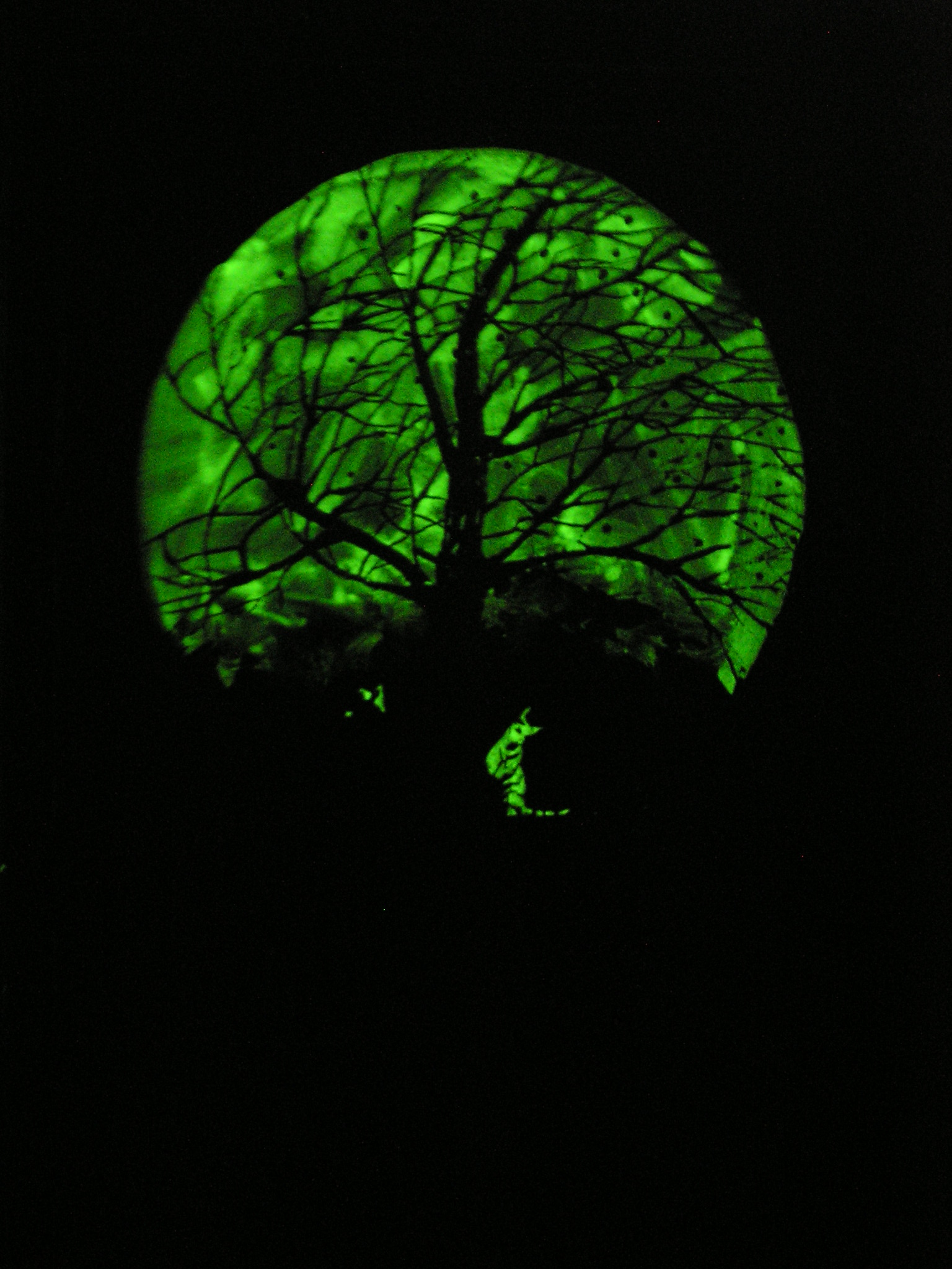 Pintura fosforescente y oro en papel. (En la oscuridad)