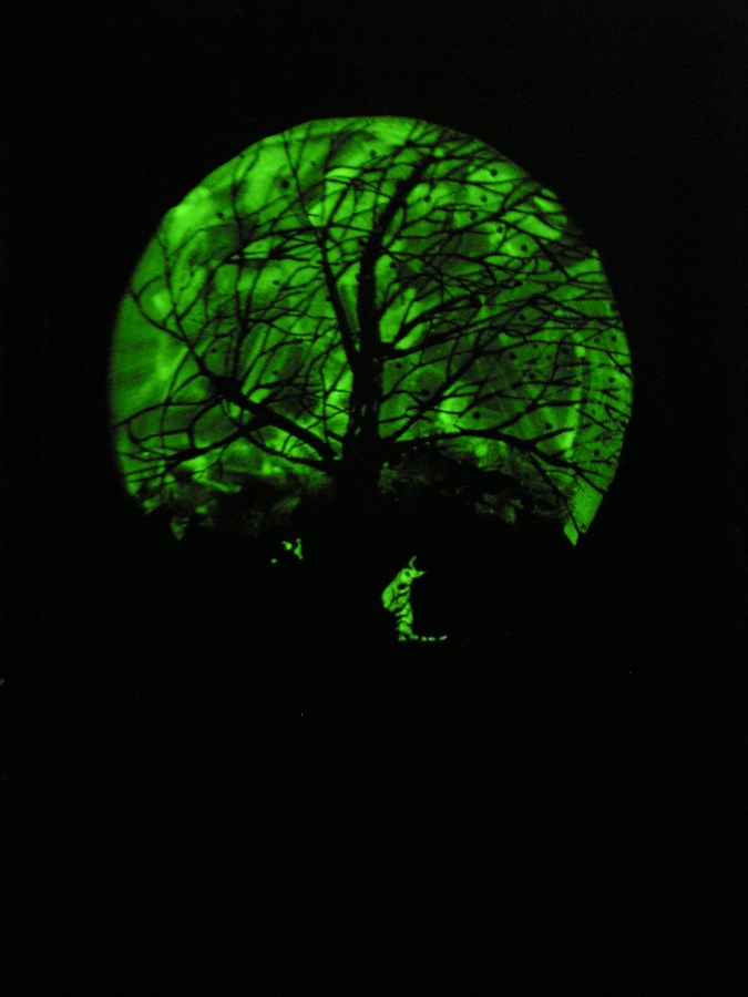 Pintura acrílica y oro en papel. (En la oscuridad)