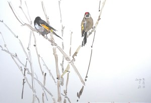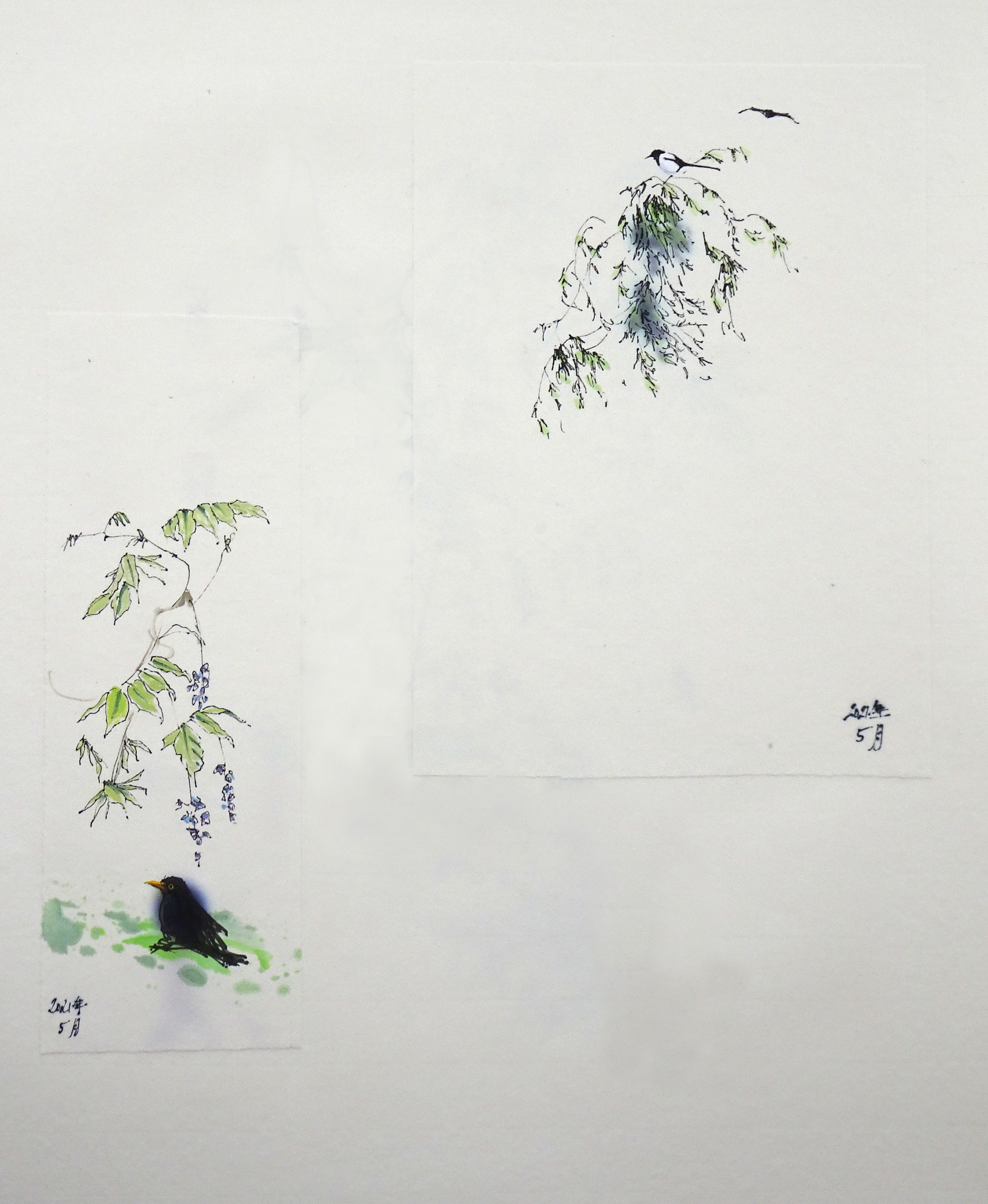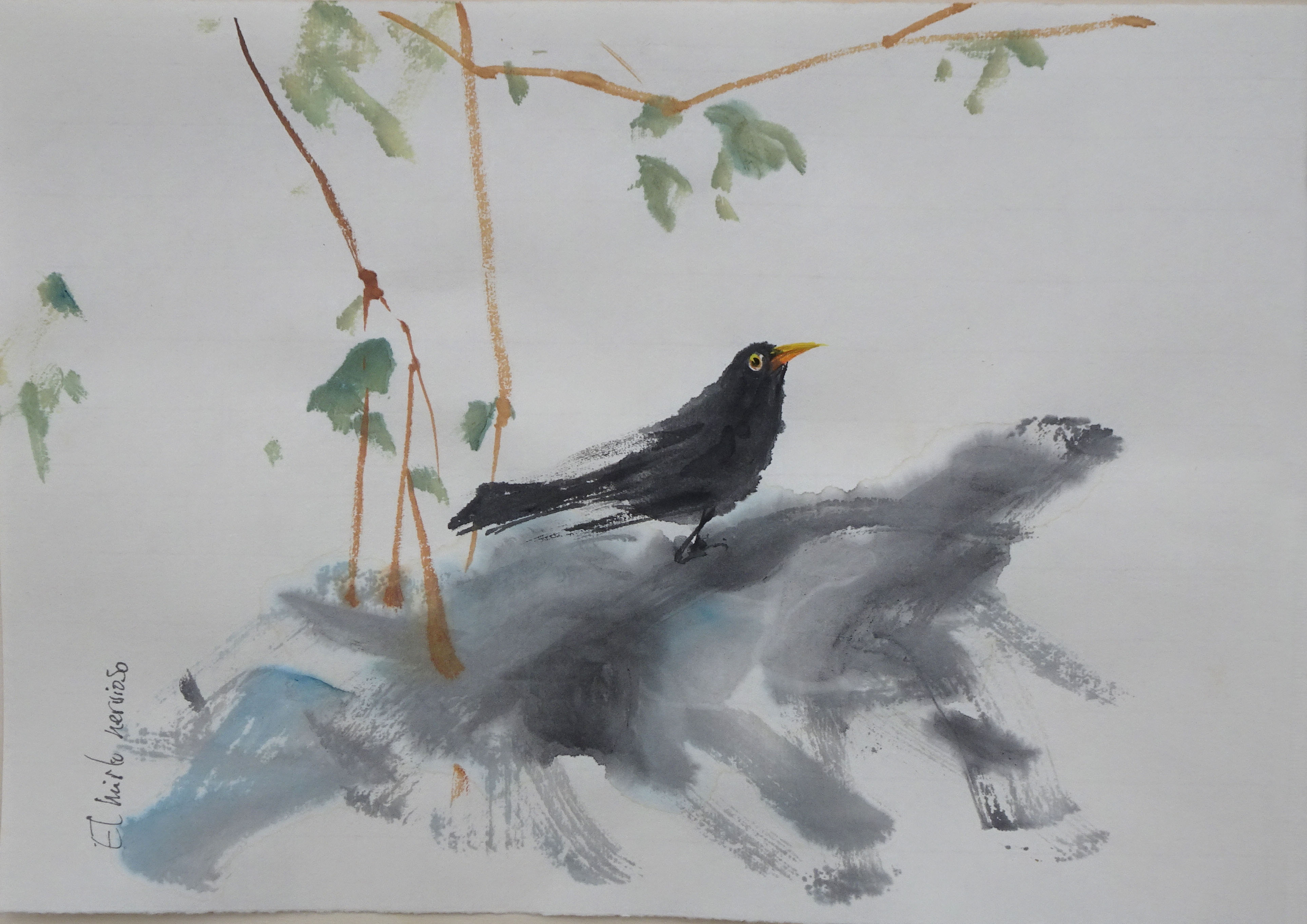 Etiquetado acuarela, Buddleias, Chinese inkt, colores al agua, flores, glicinias, gouache, inkt, iris, jardines, lirios, Mirlos, PAPEL XUAN, pájaros, PLANTAS, primavera, tinta, WATERCOLOR, waterverf