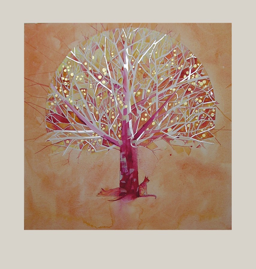 Pintura acrílica, oro y plata en papel.