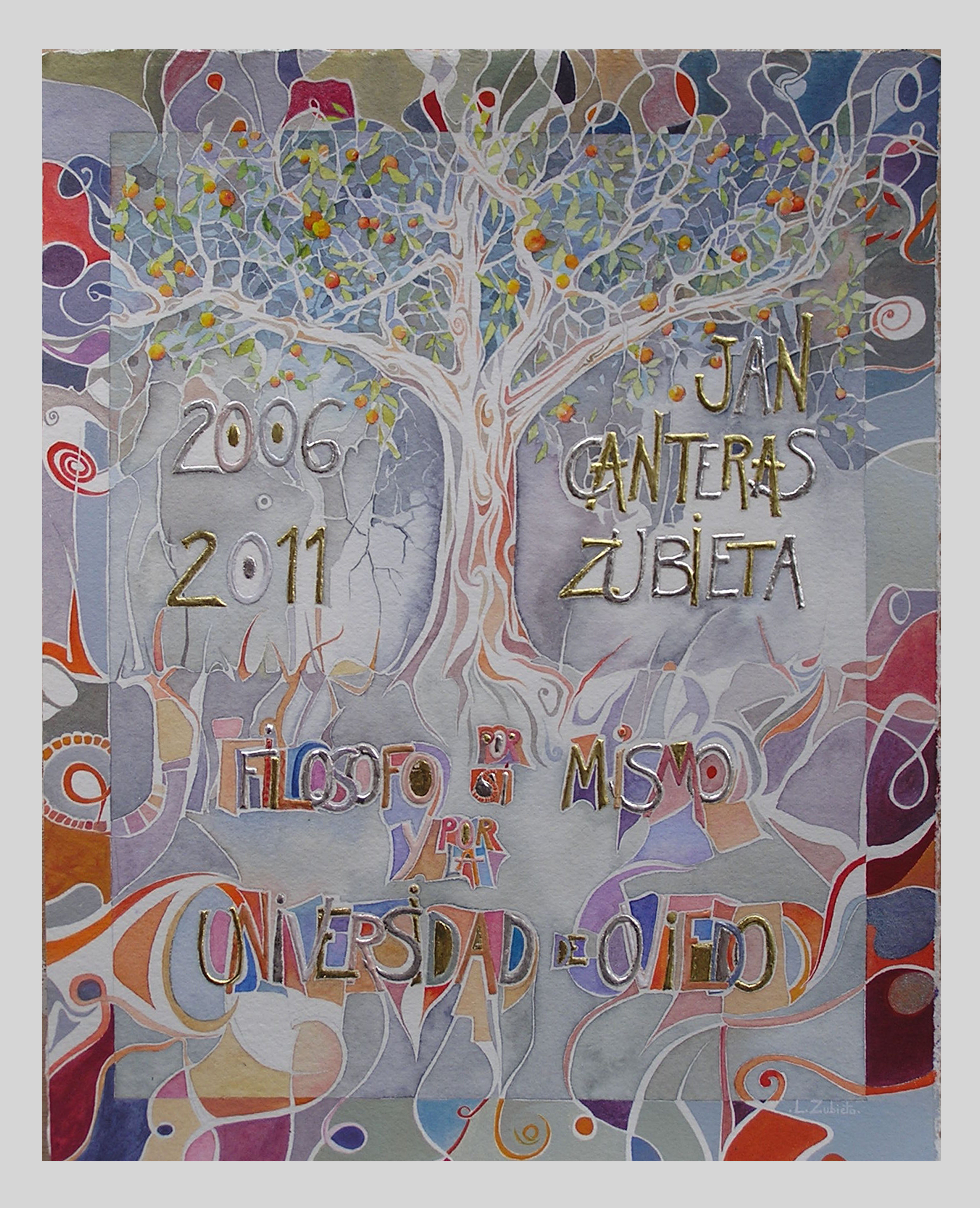 Gouache, oro y plata.